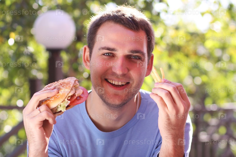 Мужчина с гамбургером