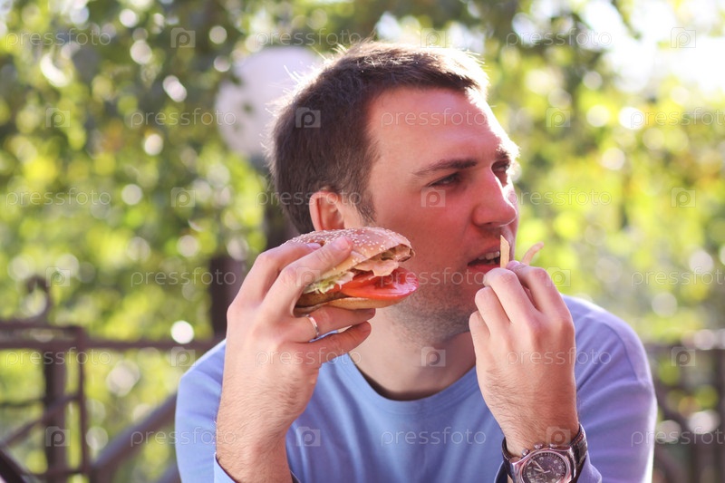 Мужчина с гамбургером