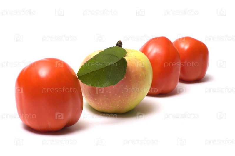 Три красных помидора и яблоко