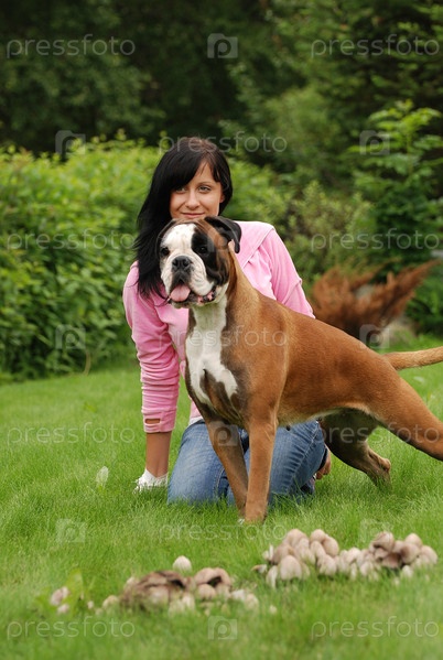 Девушка с собакой сидят на траве