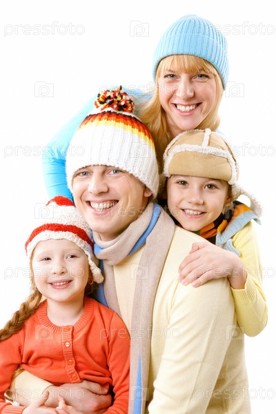 Счастливая семья в теплой одежде