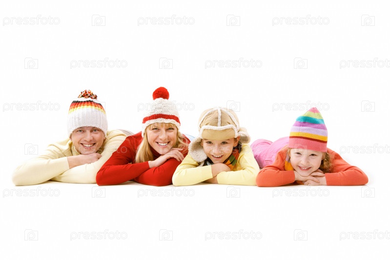 Счастливая семья в теплой одежде