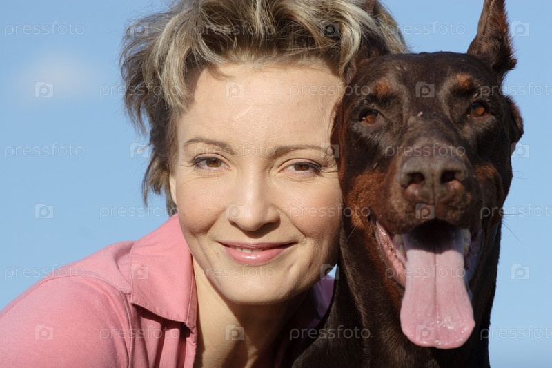 Молодая женщина с доберманом