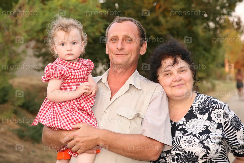 Дедушка с бабушкой и внучкой в парке
