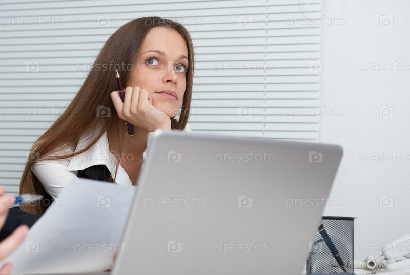Портрет бизнесвумен, мечтающей внутри офиса