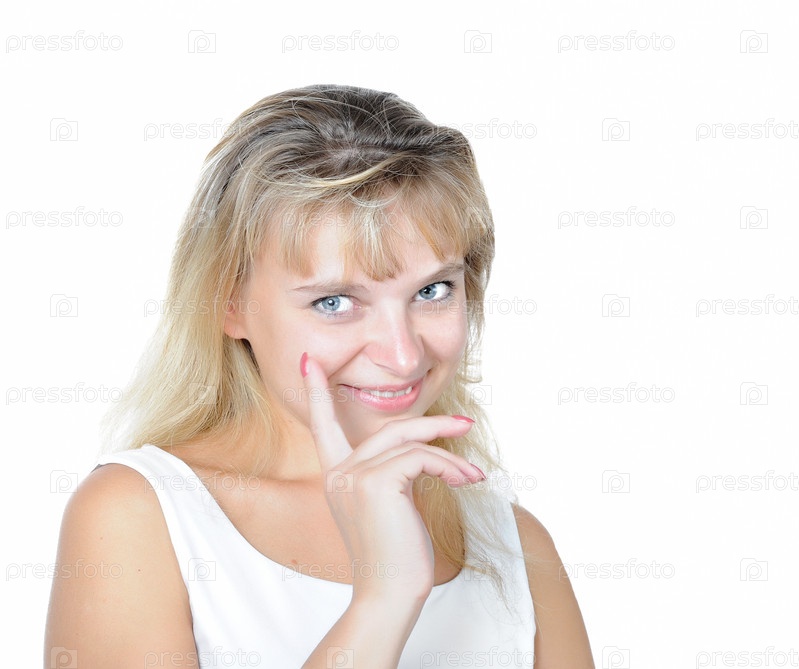 Красивая молодая женщина на белом фоне