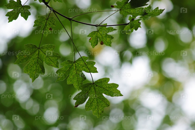 Ветка зеленых листьев на размытом фоне