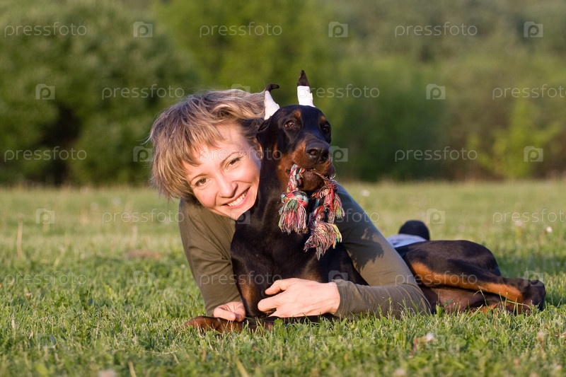 Женщина и щенок