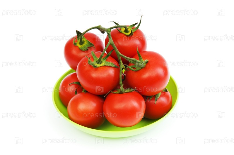 Свежие помидоры в зеленой тарелке