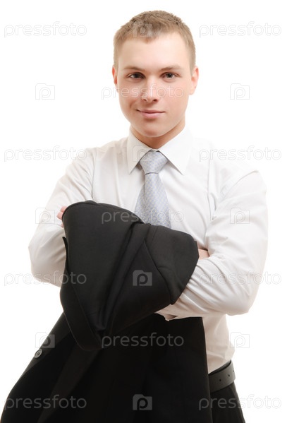 Молодой человек в деловом костюме, изолированный на белом фоне