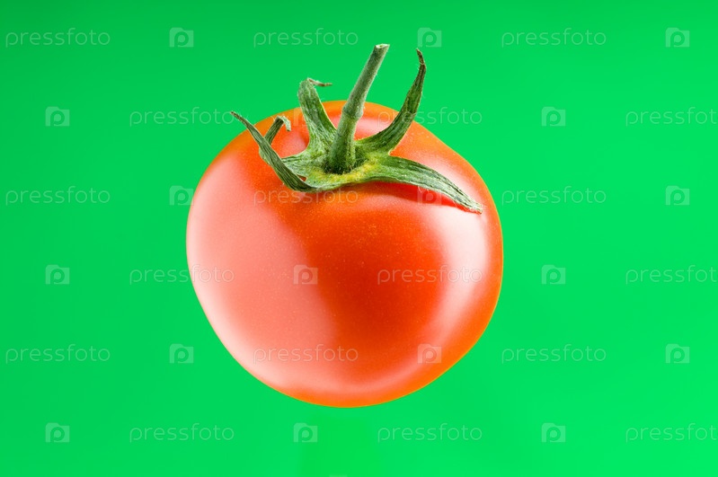 Красный помидор на зеленом фоне