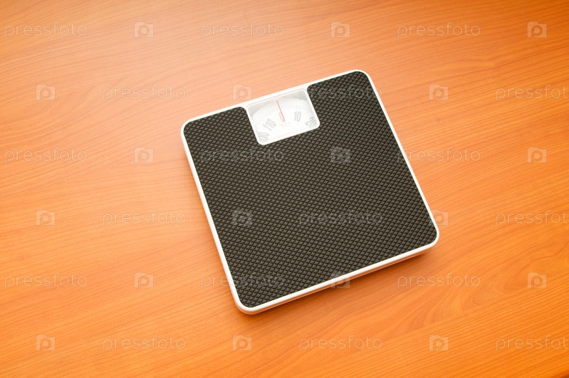 Напольные весы крупным планом на деревянном полу