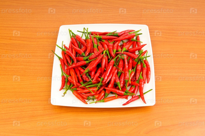 Жгучие красные перцы в тарелке