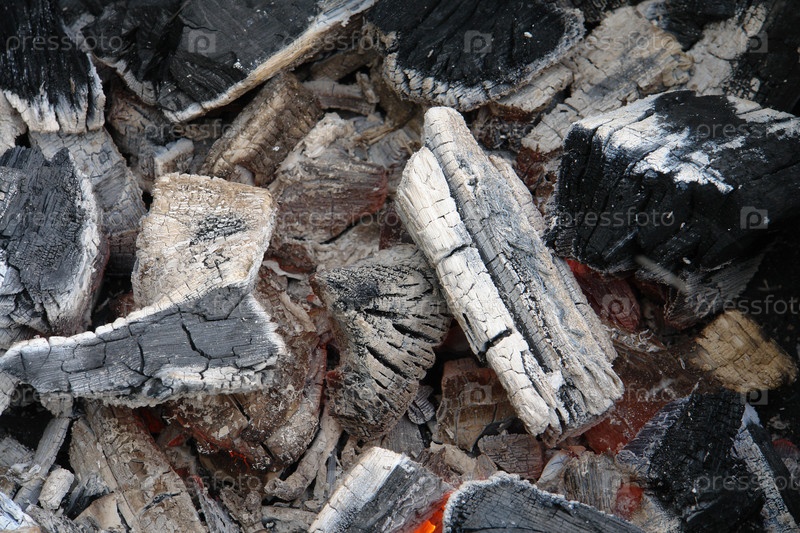 Огненный пепел и уголь на месте огня