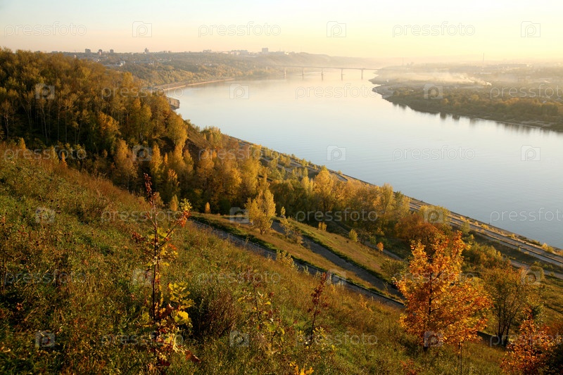 Осенняя панорама парка в Нижнем Новгороде с видом на реку