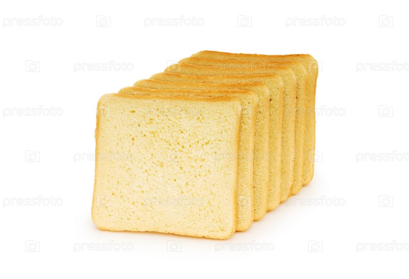 Белый хлеб кусочками на белом фоне