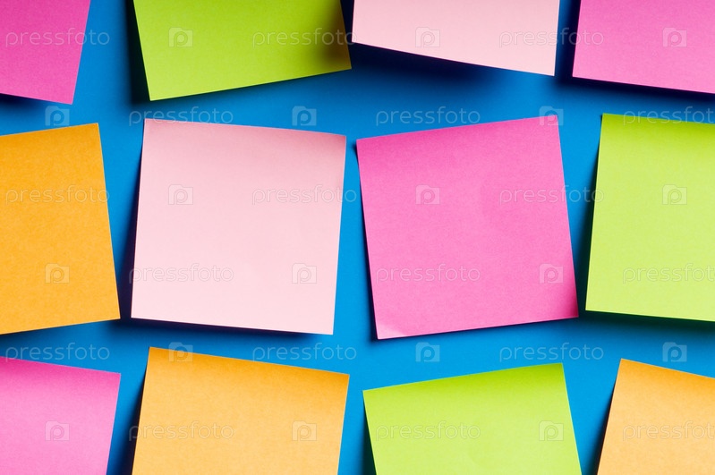 Синяя стена, заклеенная разноцветными стикерами