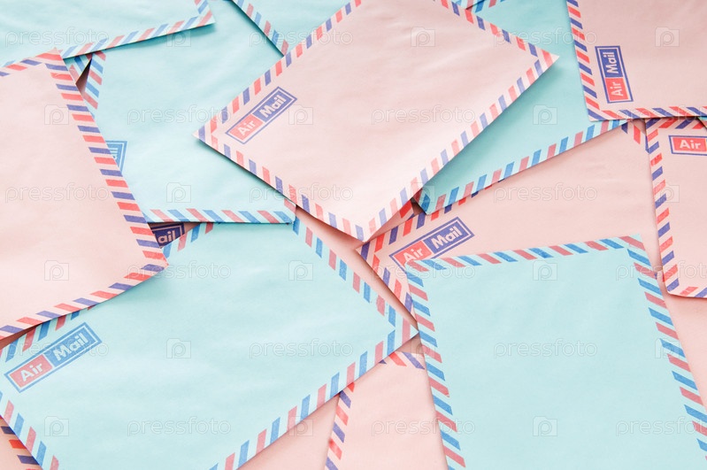 Голубые и розовые почтовые конверты крупным планом