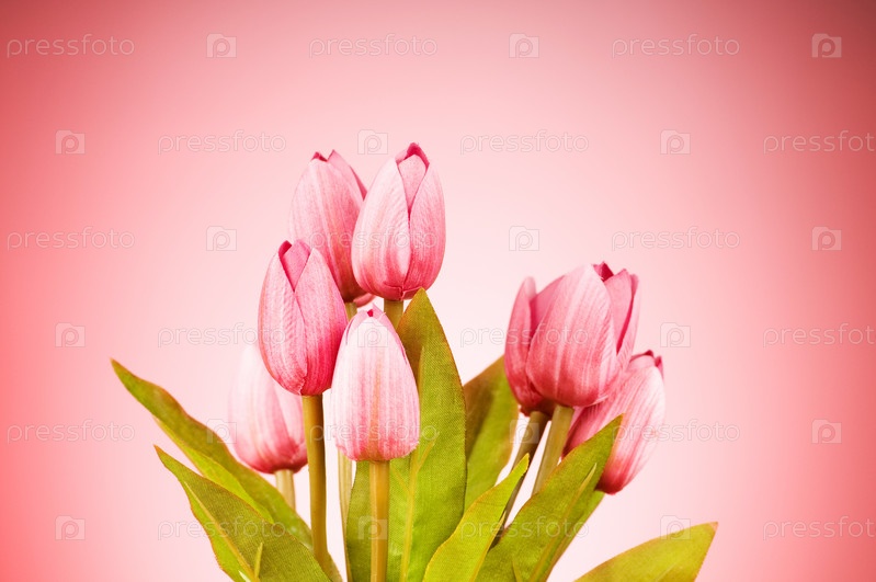 Букет розовых тюльпанов на розовом фоне