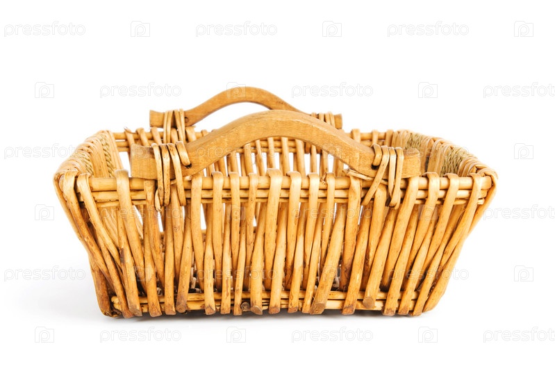 Большая плетеная корзина на белом фоне