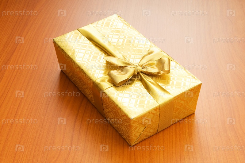Подарочная коробка золотого цвета с золотой лентой