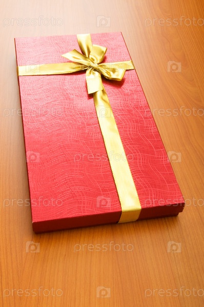 Подарочная коробка красного цвета с золотой лентой