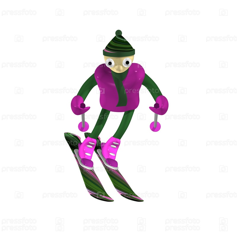 Человек горнолыжник катается на горных лыжах, изолированный, 3d