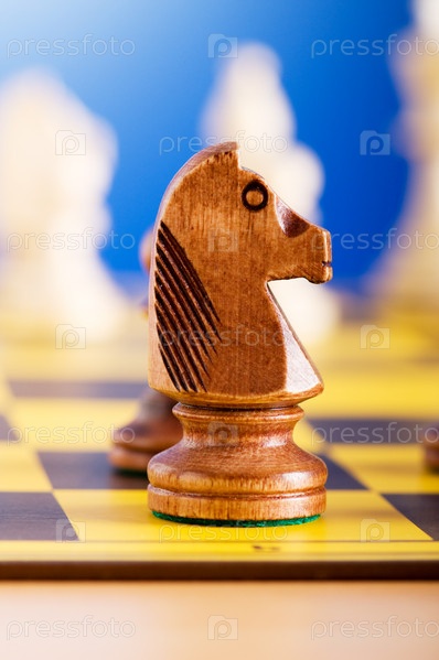 Деревянная фигура лошади на игровом поле крупным планом