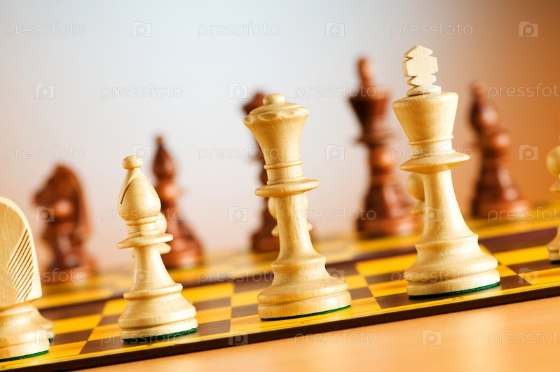 Набор шахматных фигур на игровом поле