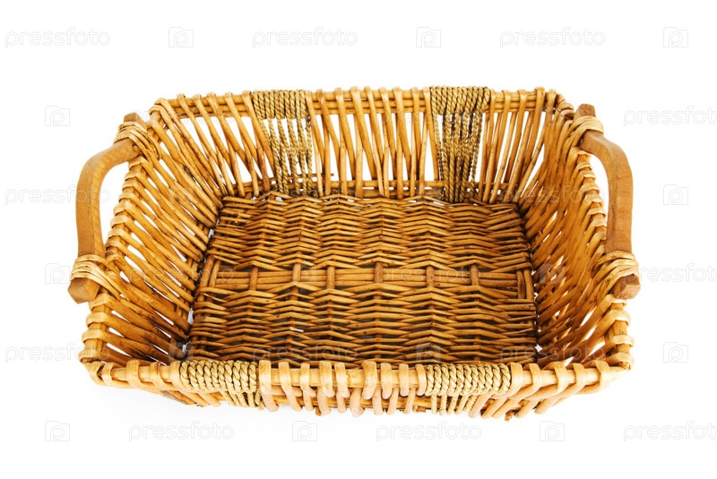 Большая плетеная корзина на белом фоне