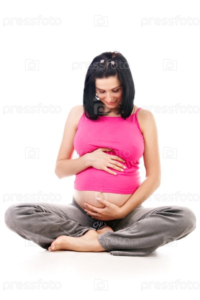 Беременная женщина на белом фоне
