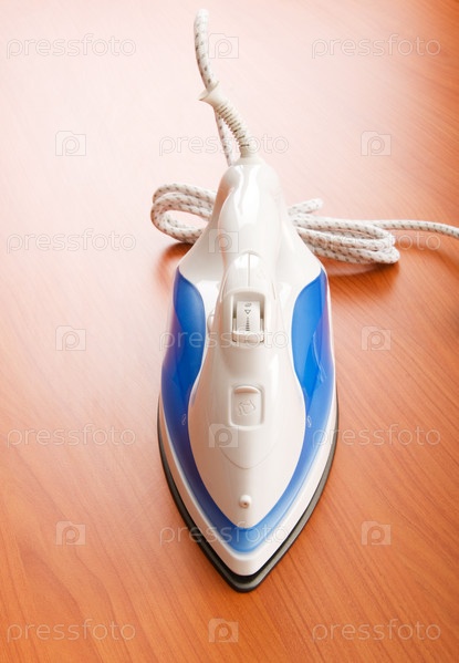 Современный электрический утюг на деревянном столе
