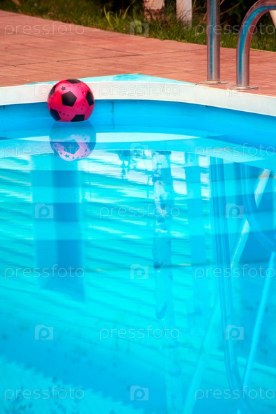 Красный футбольный мяч в бассейне с водой