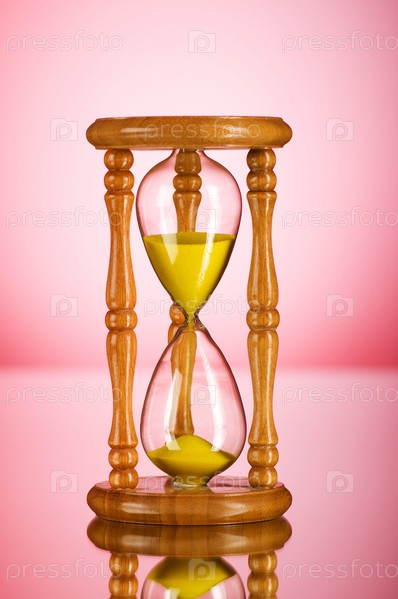 Концепция времени - песочные часы на розовом фоне