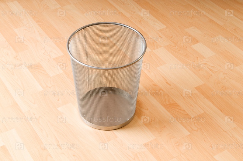 Пустая мусорная корзина на ламинатном покрытии