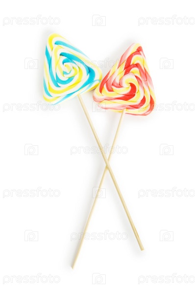 Два треугольных разноцветных леденца, изолированных на белом фоне