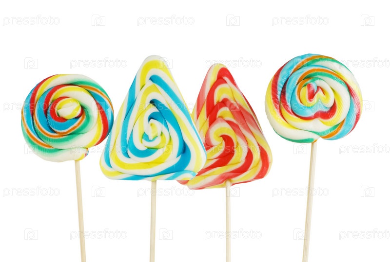 Четыре разноцветных леденца, изолированных на белом фоне