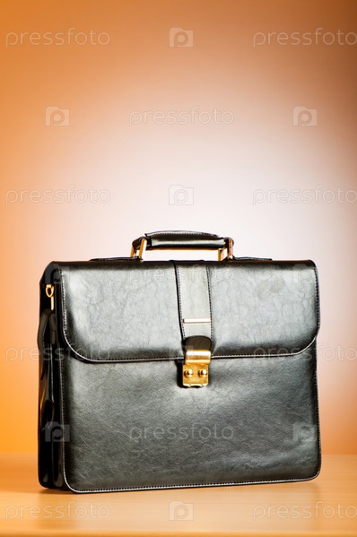 Черный кожаный портфель на светло-коричневом фоне