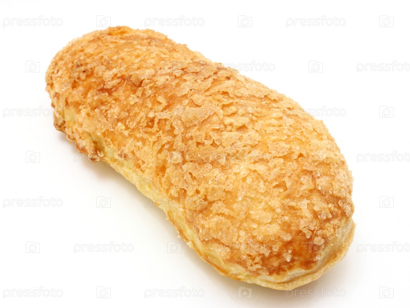 Сдобная булочка с присыпкой на белом фоне