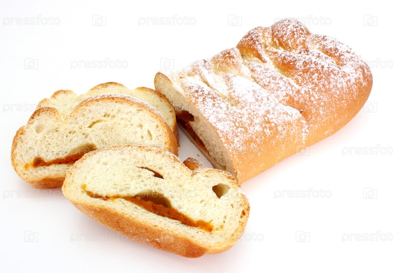 Рулет с начинкой на белом фоне