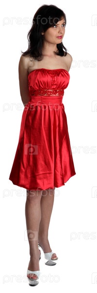 Молодая красивая женщина в красном платье