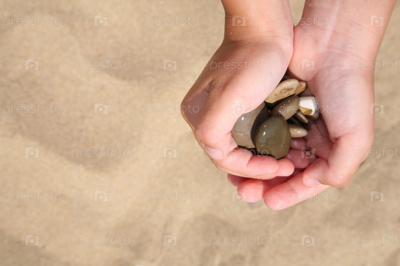 Камни в руках девушки