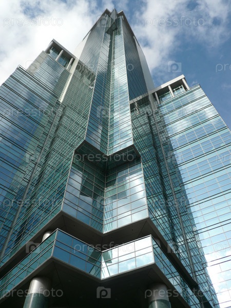 Фасад высотного офисного здания на фоне неба