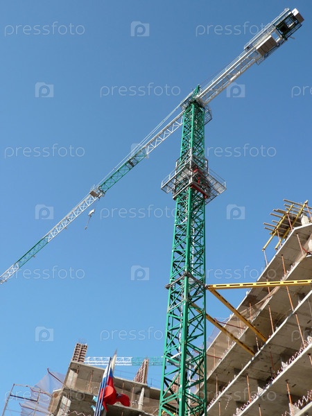Строящийся многоэтажный дом с башенным краном на фоне неба