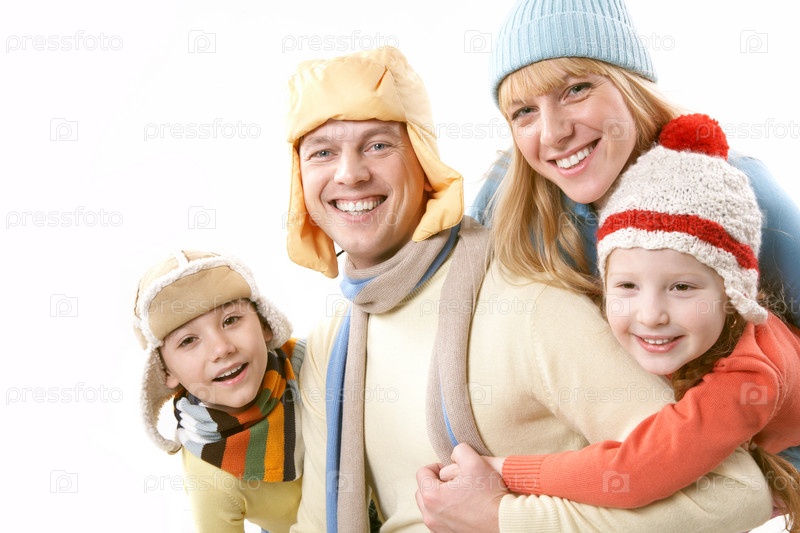 Семья демонстрирует зимнюю одежду