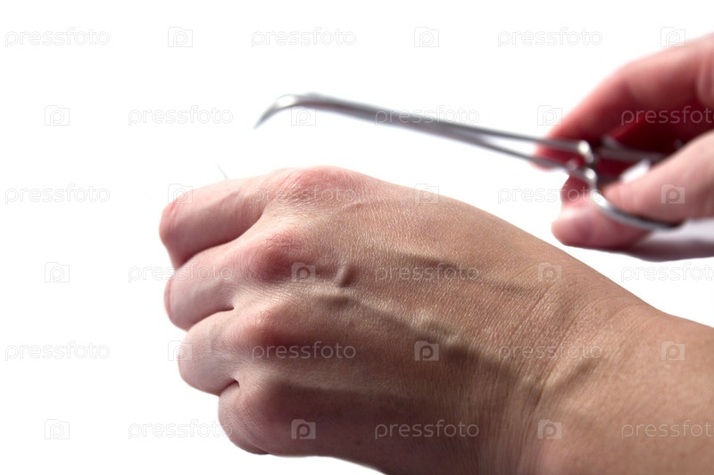 Медицинский зажим в руках