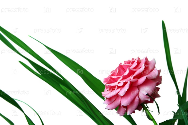 Распустившийся бутон розы на белом фоне
