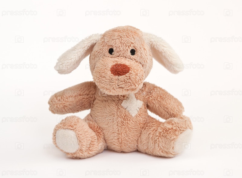 Мягкая игрушка собака, изолированная на белом фоне