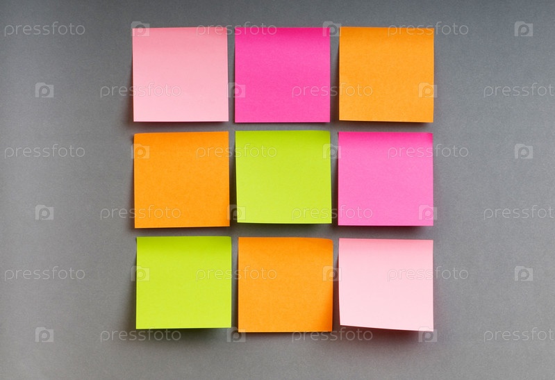 Квадрат из разноцветных стикеров на сером фоне