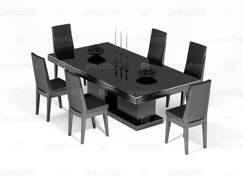 Стол и стулья на белом фоне, 3D